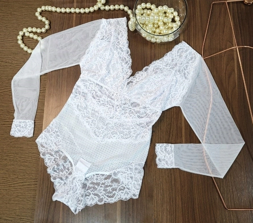 A mulher que busca comodidade e versatilidade Bodys são a opção certa. Confeccionado em liganete, manga longa e com detalhes em renda nos punhos e no decote das costas. Pode ser usado em vários momento e com diversas composições de looks, desde looks mais clássicos, sexy, atividade física e até no dia a dia, trazendo estilo e sensualidade ao look. Combine com calça jeans, shorts ou uma saia e arrase em qualquer ocasiões.