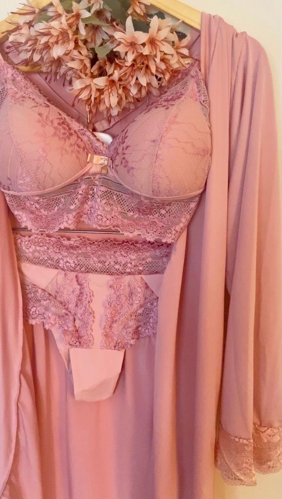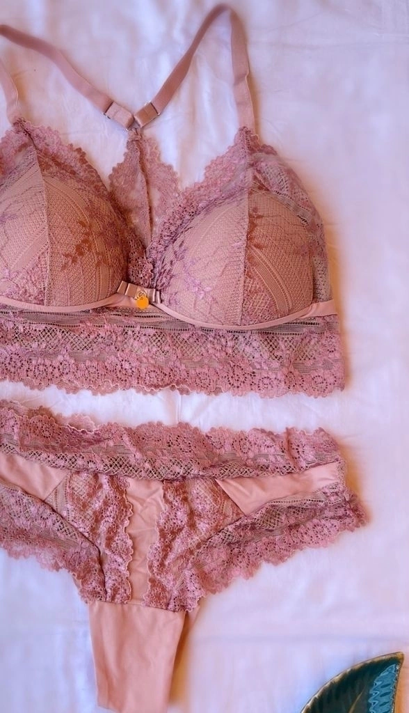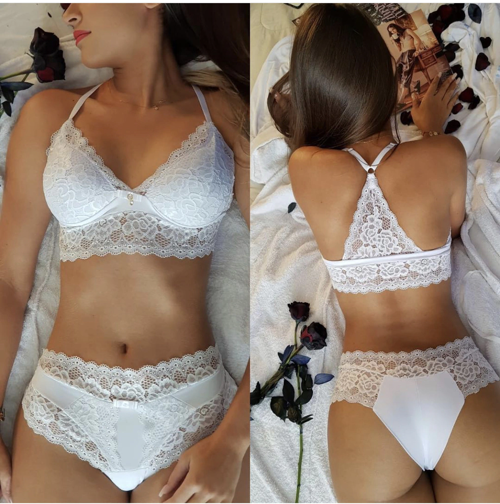 Conjunto de lingerie com o sutiã Costa nadador, um sutiã estilo top em renda com detalhes em liganete de microfibra, bojo gota, triângulo ou borboleta como é mais conhecido, sem aro e sem bolha, alça com regulagem, super leve, desliza por cima da cabeça e não possui fecho, esse sutiã é super adequado para mulheres com prótese ou que não podem usar sutiã com aro. Calcinha com lateral larga e cintura mais alta, fio duplo,uma das queridinhas quando o assunto é conforto e segurança. Tecido liganete de Microfibra e renda antialérgica super confortável. As rendas podem ter variações no desenho, trabalhamos com renda antialérgica e confortável que não machuca, nem causa bolinhas ou outros ferimentos na pele. Cor: O desvio de cores ou tom pode acontecer devido às diferentes configurações da tela do seu dispositivo. Tamanho correspondente: P-40 / M-42 / G-44 / GG-46 Modelo: Andressa Sousa Veste manequim: 40 Lingerie: 42 ou M Altura: 1,74 Busto: 84 Cintura: 72 Quadril: 104 A elasticidade de cada tecido faz com que a tabela de medidas seja aproximada e não exata. Nossas rendas tem uma boa elasticidade provocando um perfeito ajuste no corpo. Cuidados: 1. A peça deve ser usada no tamanho correto para vestir perfeitamente e não estragar o produto. 2. Não lavar na máquina, recomendamos lavá-lo á mão com sabão neutro e secar a sombra. (Temos uma página aqui no site explicando cuidados especiais com as peças)