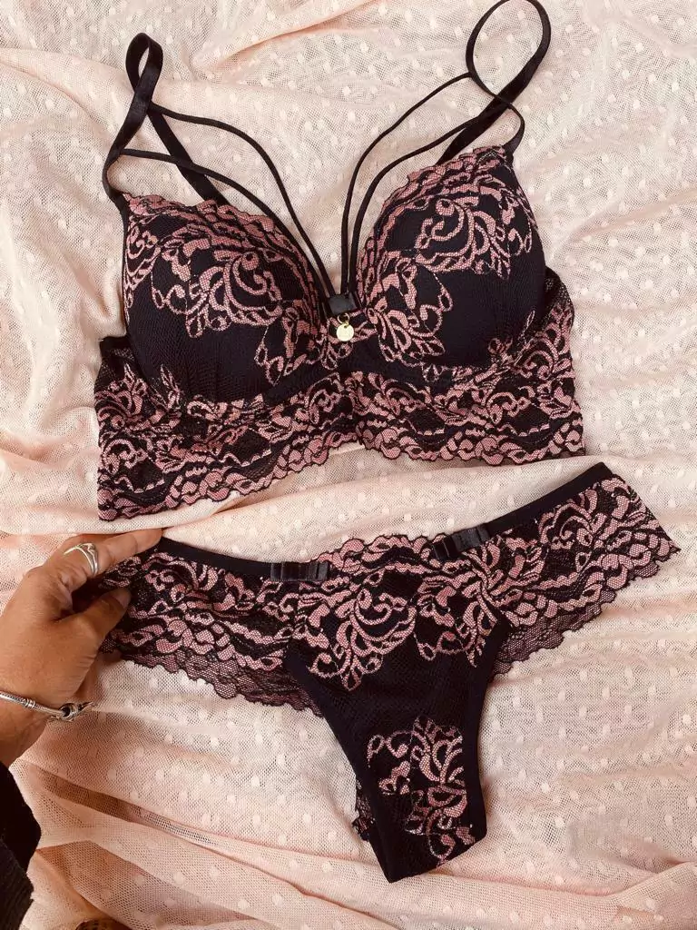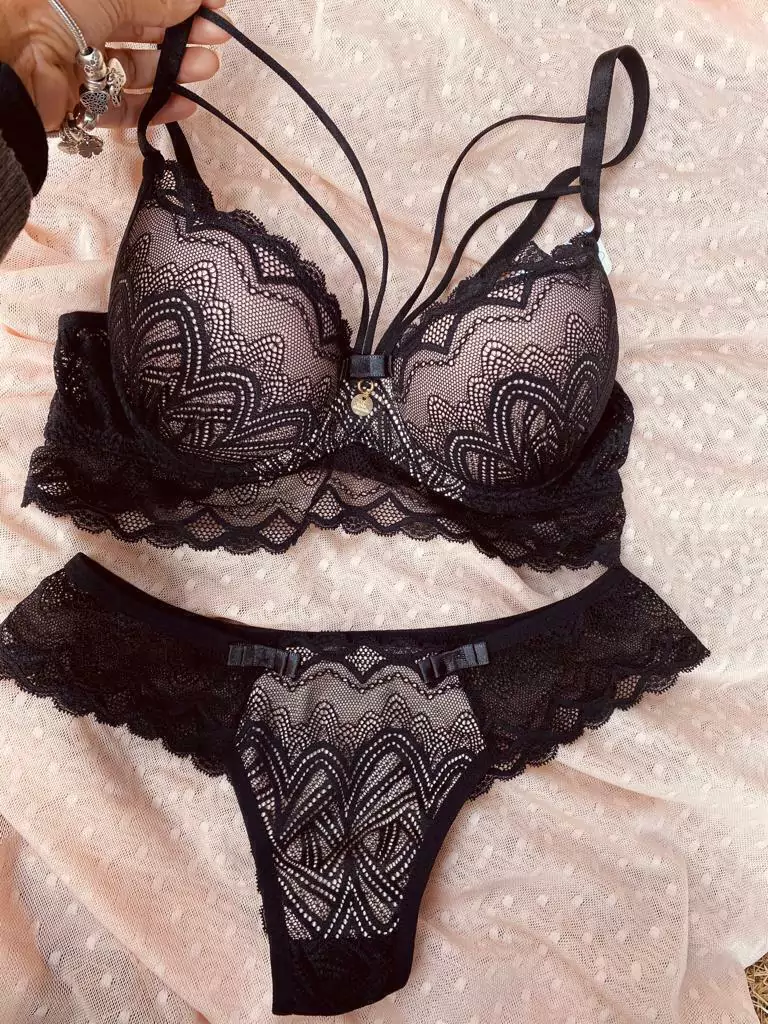 Sutiã com bojo e aro, regulagem nas alças, os tamanhos GG e XG as alças são mais largas permitindo mais segurança e os tamanhos P e M possui bolhas no bojo, fecho com 2 níveis. Calcinha modelo fio duplo detalhe em renda! A strappy trás uma discreta sensualidade, ideal para ser usado a mostra em qualquer ocasião!