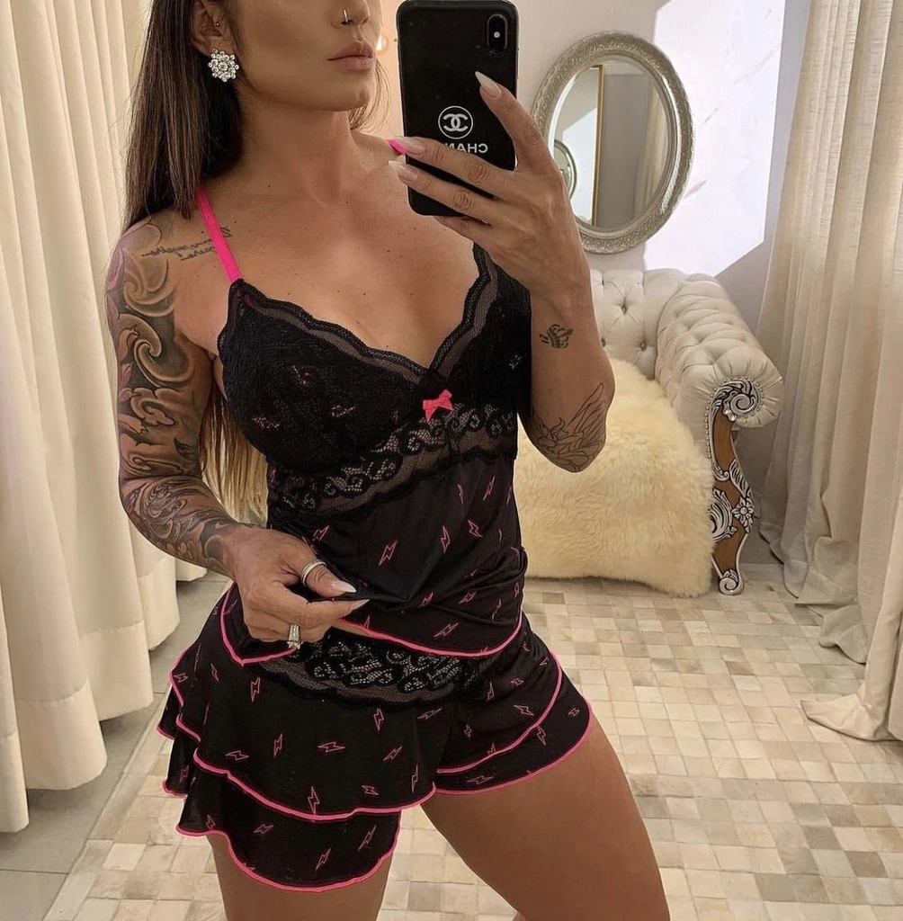 Se você é fashionista e ama um estilo vai se apaixonar por esse pijama de short Baby doll puro charme. Blusa sem bojo com detalhes em renda no busto e costas, modelo estilo nadador, alças com regulagem. Short com camada que forma um estilo babadinhos e recorte rendado no cós.