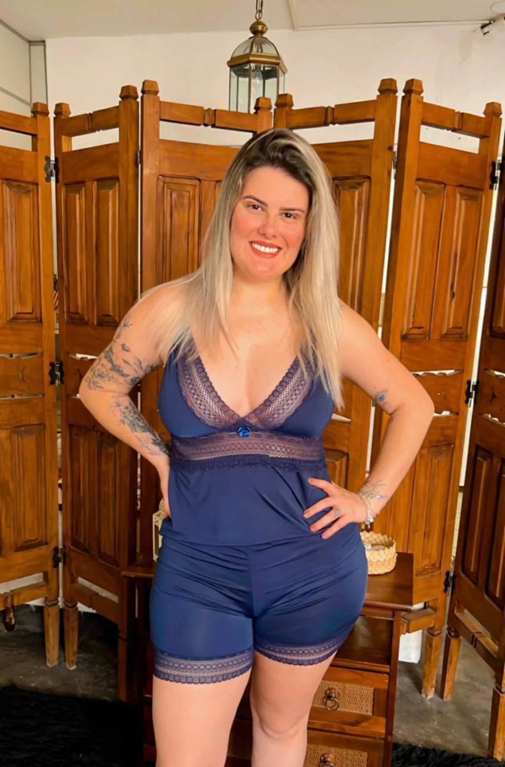 Este baby doll clássico é ideal para quem busca conforto sem abrir mão da sofisticação. Com detalhes em renda delicada na parte do peito e no short, ele realça a beleza do corpo feminino de forma sutil e charmosa.
